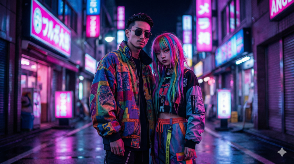 RyugoIshidaは、特徴的なサングラスやキャップ、そして独自のカラーバランスで構成されたコーディネートで、ヒップホップファッションの新たな可能性を提示しています。一方のNENEは、モードからストリート、サイバーパンク的な要素までを難なく着こなし、その圧倒的なビジュアルでファッション誌の表紙を飾ることも珍しくありません。夫婦で並んだ際の彼らのビジュアルは、単に服を着ているというレベルを超え、二人で一つのアート作品を形成しているかのような完成度を誇ります。彼らのファッションは、日本のストリートシーンにおいて常に最新のトレンドとして参照され、彼らが着用したブランドやアイテムは瞬く間に話題となるなど、強力なインフルエンサーとしての役割も果たしています。