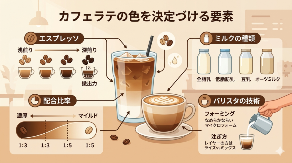 また、温める際の温度が適切に管理されているかどうかも、ミルクの成分変化を通じて最終的な色合いに微細な影響を与えているという見方ができそうです。