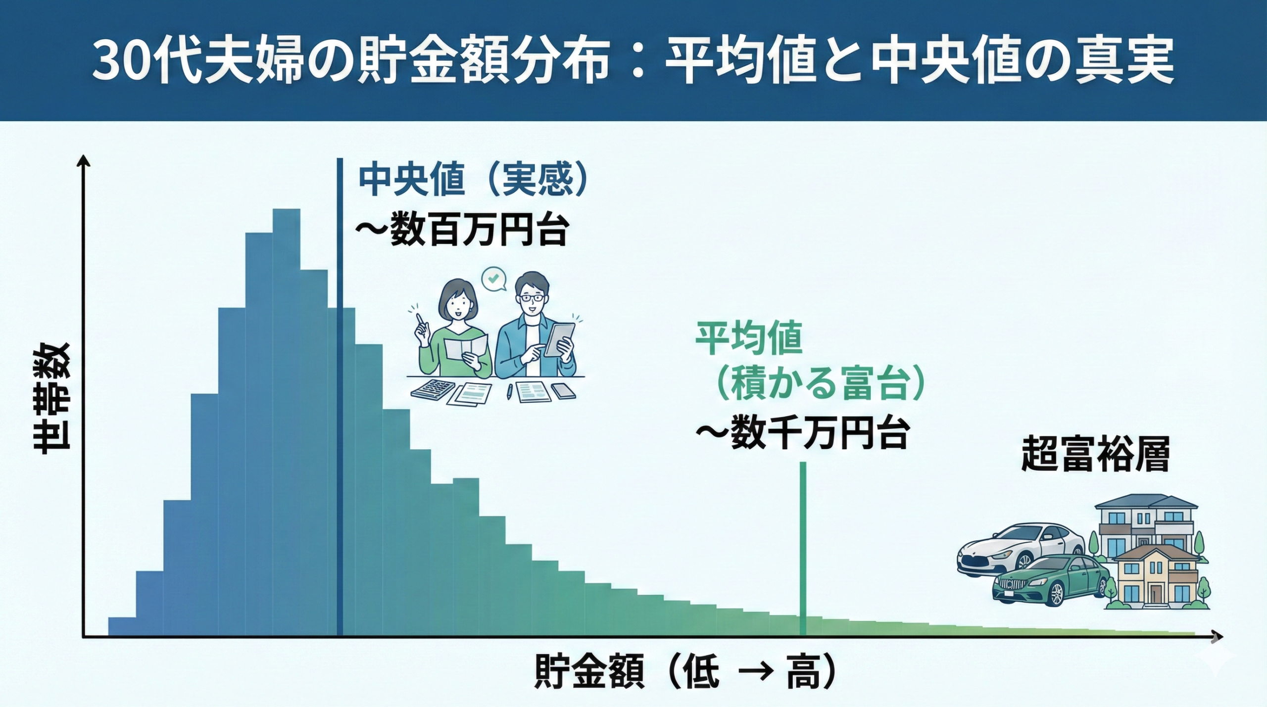 ・30代夫婦の貯金額は平均値と中央値で大きな乖離が存在する