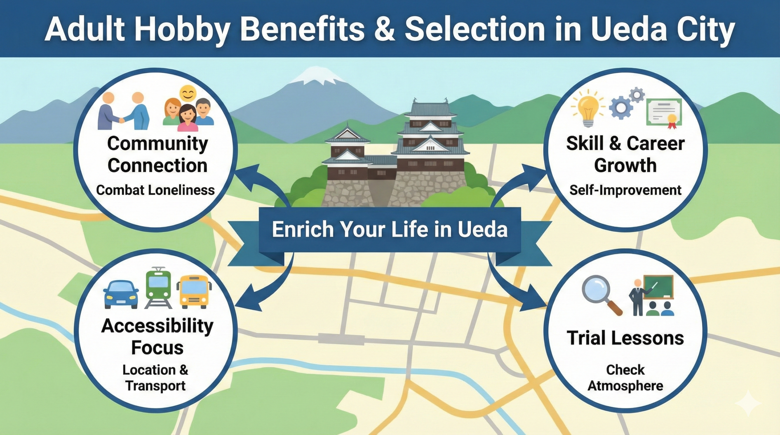 大人になってからの習い事は、子供の頃の習い事とは異なり、強制されるものではなく、自らの意思で選択し、楽しむためのものです。上田市という地域特性を踏まえつつ、大人が習い事を始めることの多面的なメリットと、失敗しないための教室選びの基準について深掘りしていきます。