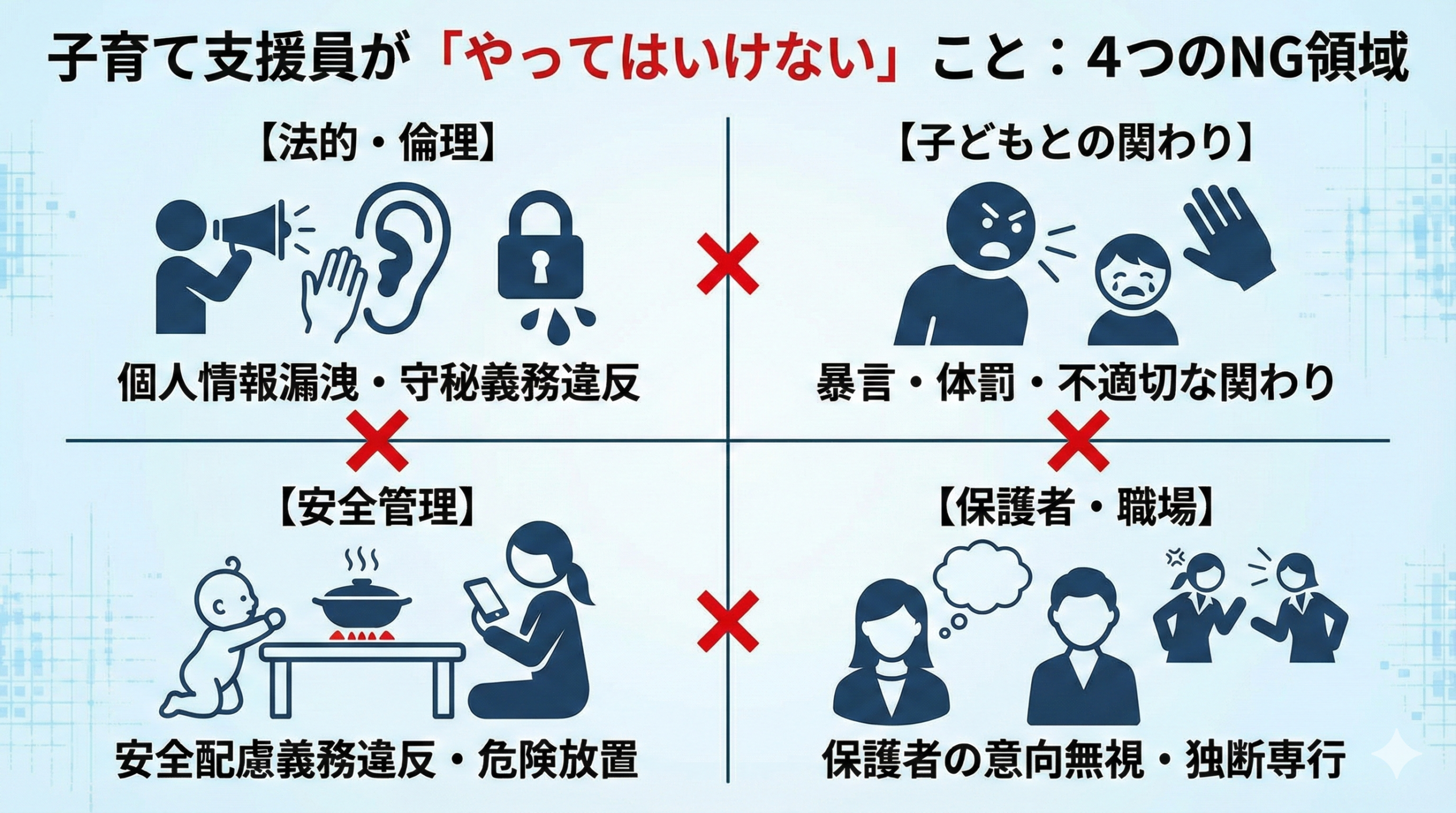 子育て支援員の業務における法的・倫理的にやってはいけないこと