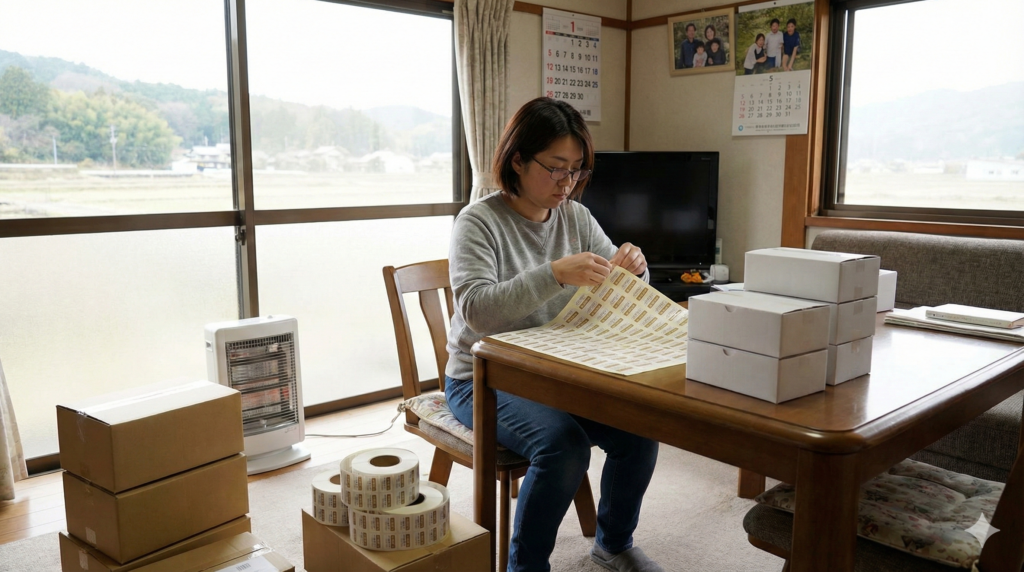 まず、これらの資材を保管しておくための清潔なスペースが必要です。湿気や直射日光を避け、商品が劣化しない環境を確保しなければなりません。そして、実際に作業を行うための広いテーブルも必要です。食卓を使う場合、食事のたびに資材を片付ける手間が発生し、作業効率が著しく低下します。また、段ボールは意外と場所を取るため、部屋の一角が資材で埋め尽くされ、家族の生活動線を圧迫することもあります。