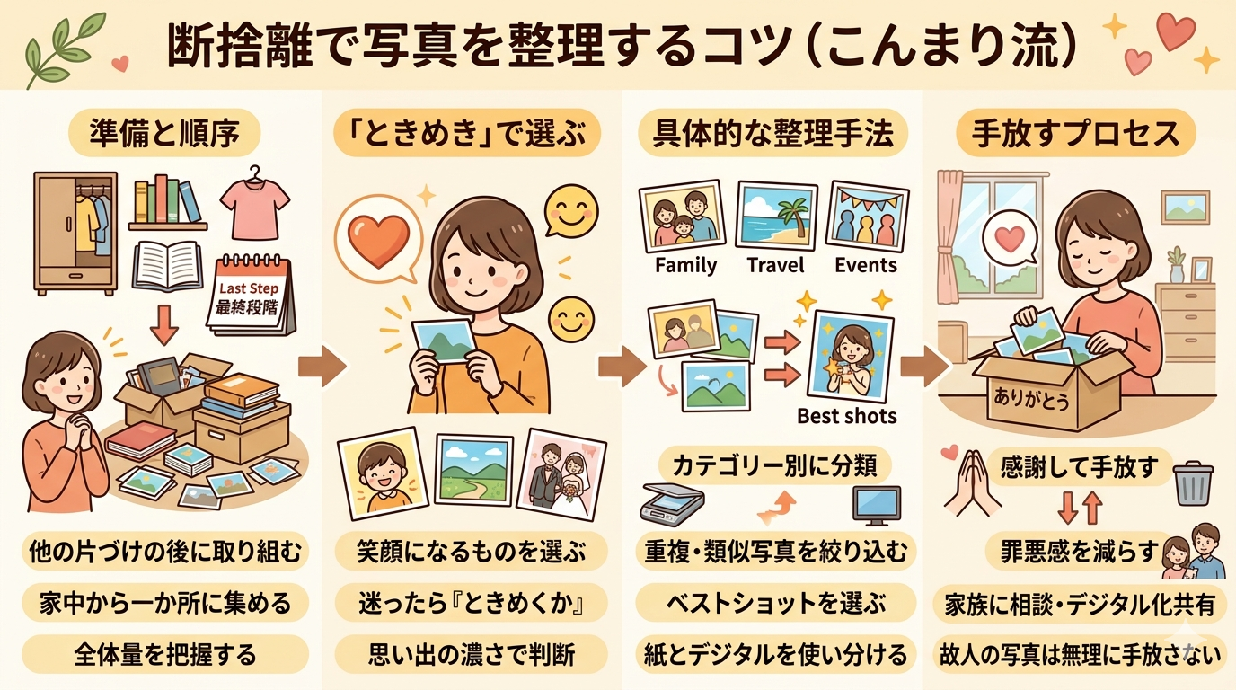 一枚一枚に心を込めて向き合う姿勢が、結果として納得のいく整理につながっていくと言えそうです。