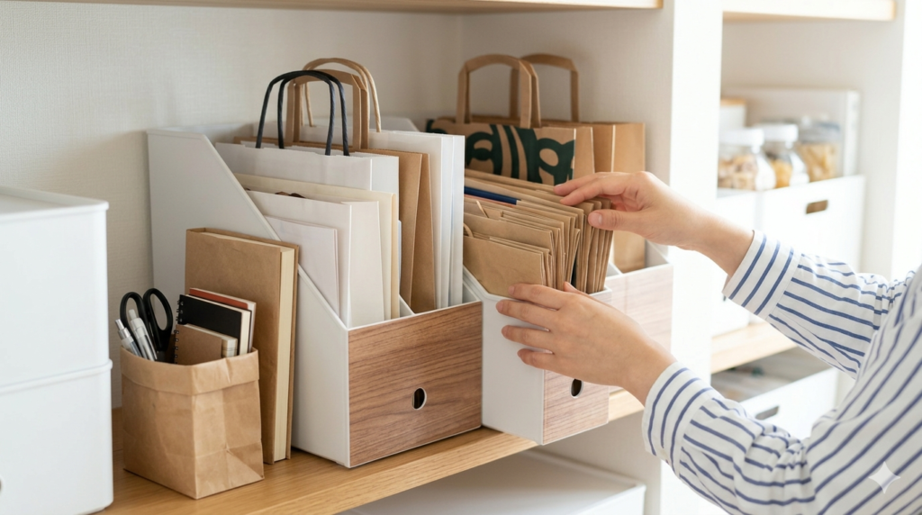 収納グッズとしての再利用を前提に考えることで、紙袋を「無駄なく使い切る」という満足感も得られそうです。