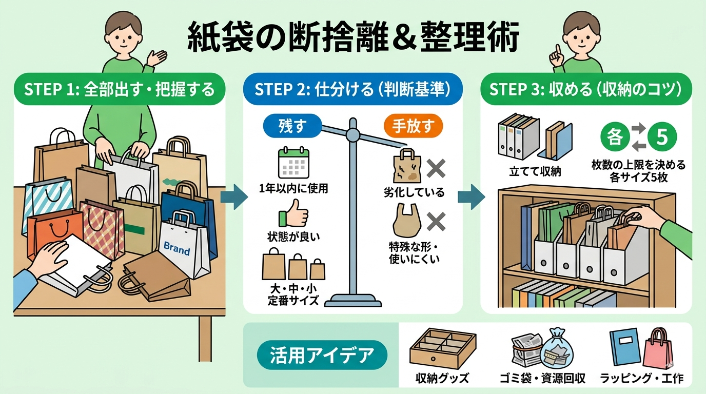 この記事が、紙袋の整理に悩む方にとって、実践的なヒントをお届けできれば嬉しく思います。