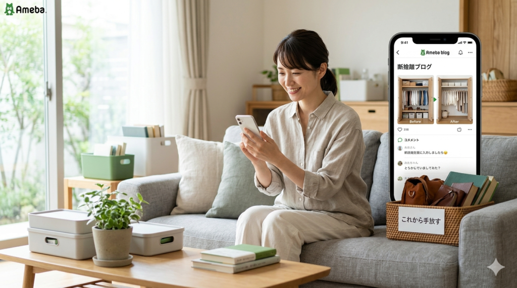 アメブロは日本国内で広く利用されている大手ブログサービスで、多くの主婦や片づけ好きの方が、日々の断捨離の取り組みや暮らしの工夫を発信しているようです。