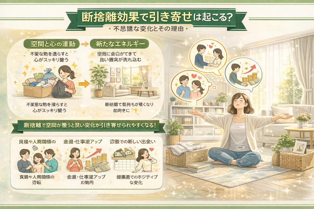 断捨離を通じて心が穏やかで満たされた状態になることで、同じような質の現実が引き寄せられやすくなると考えられているようです。