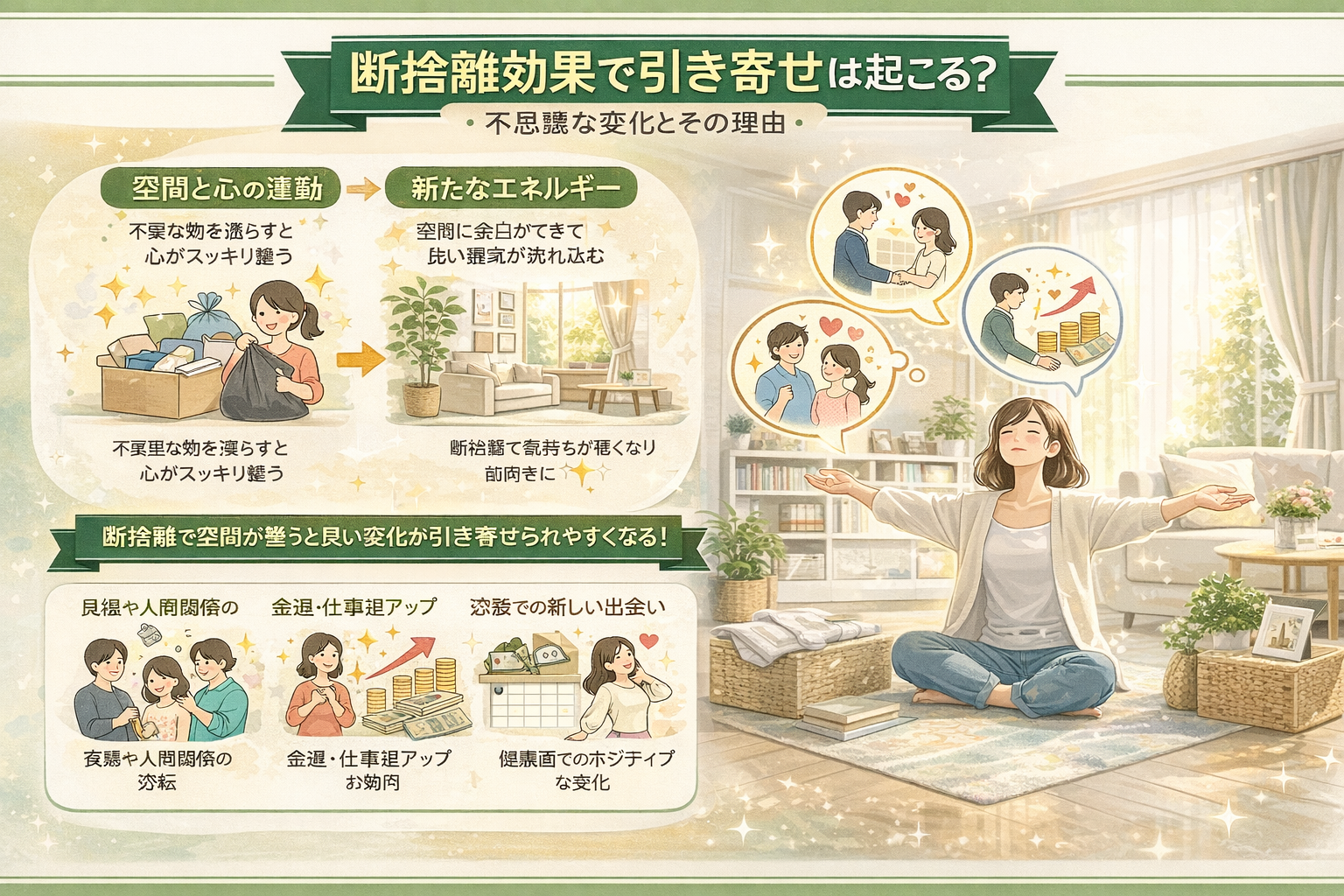 今回は、断捨離効果と引き寄せの関係について、その仕組みや具体的な変化、実践のポイントなどを幅広く調査した内容をまとめていきます。