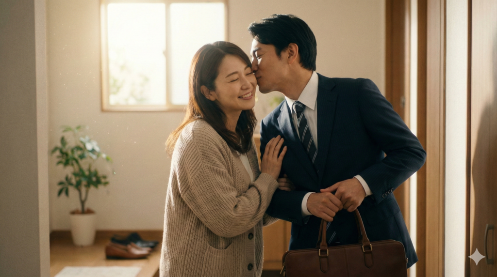 キスを習慣化する上で、最も導入しやすく、かつ効果的なのが「行ってきますのキス(いってらっしゃいのキス)」です。これは朝の玄関先で行われる挨拶の一環として組み込むことができるため、特別なムードや演出を必要としません。